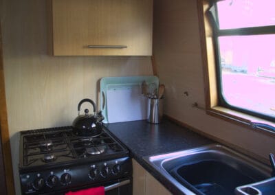 Sweet Basil is one of our luxury 2 – 4 berth boats. The layout includes full central heating by radiators for the cooler days, a DVD player with LCD TV, radio and CD player with USB input at the front, dinette which converts to a double bed, a well equipped galley with gas cooker including a grill, oven and hob with four burners and extractor fan. The bathroom includes a Mira shower, bath and flush toilet. The rear comprises internally sprung mattresses which can be kept as singles or positioned to create a permanent double bed.